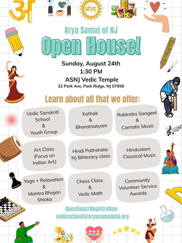 For queries related to ASNJ classes, please write to us at contact@aryasamajofnj.org or contact: